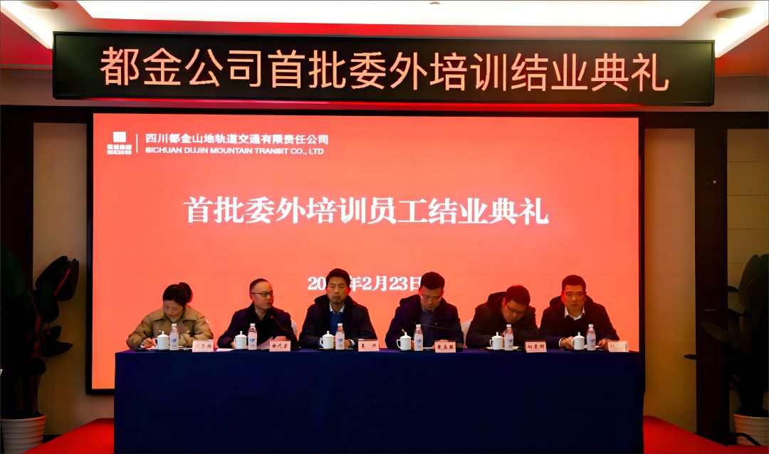 2月23日,都金公司組織召開首批委外培訓員工結業典禮,統籌開展運營管理委外培訓結業工作。都金公司黨委書記、董事長李洲,成都交通高級技工學校副校長、成都軌道教育科技有限責任公司執行董事、總經理袁嘉駿出席會議并講話,都金公司黨委副書記、董事、總經理徐代宏主持會議。