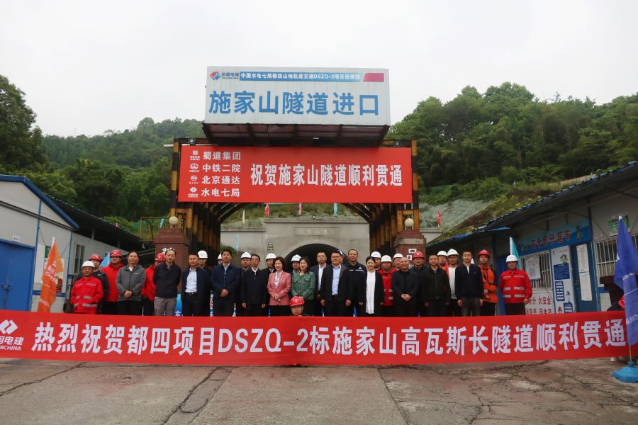 5月9日,春風和煦,彩旗招展,在都四項目施家山隧道進口,正在熱烈舉行祝賀施家山隧道順利貫通儀式。蜀道集團安全環保和應急管理部部長舒永熙、軌道建管部副部長李忠,蜀道新制式軌道集團黨委副書記、副董事長、總經理張瑞英,都金公司黨委書記、董事長李洲參加活動。