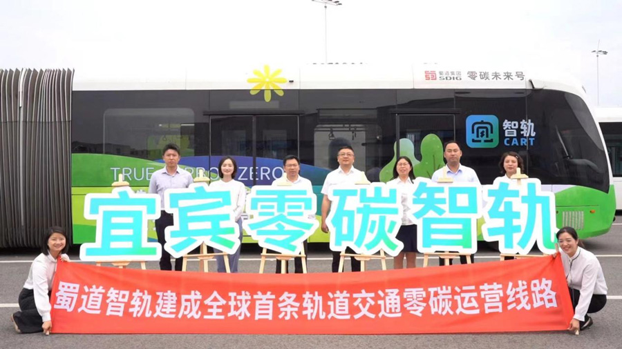2023年5月底,蜀道智軌零碳示范線——宜賓智軌T1線正式收到全球軌道交通行業第一張零碳運營線路PAS2060碳中和證書。