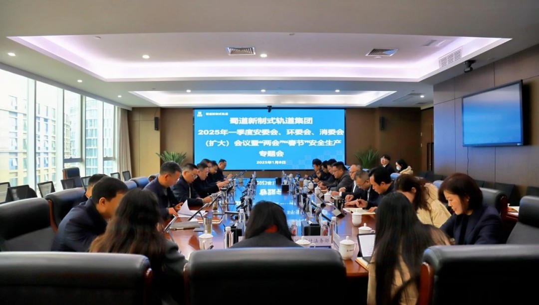 為落實蜀道集團有關工作部署,切實抓好蜀道新制式軌道集團一季度及“兩會”“春節”等重要時段安全環保工作,1月8日,蜀道新制式軌道集團召開安委會、環委會、消委會(擴大)會議暨“兩會”“春節”安全生產專題會,蜀道新制式軌道集團黨委書記、董事長羅廷出席會議并講話,黨委副書記、副董事長、總經理張光舉主持會議。