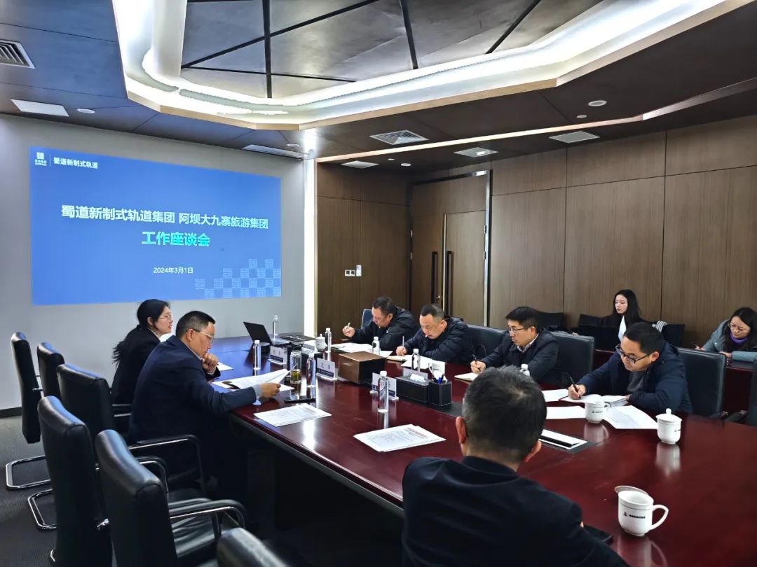 3月1日,蜀道新制式軌道集團(tuán)與阿壩大九寨旅游集團(tuán)在成都舉行工作座談。蜀道新制式軌道集團(tuán)黨委副書記、職工董事、工會(huì)主席龍潛,黨委委員、副總經(jīng)理劉德衛(wèi),經(jīng)營(yíng)管理部部長(zhǎng)、交旅公司董事長(zhǎng)陳丹;阿壩大九寨旅游集團(tuán)總經(jīng)理杜鵬飛,副總經(jīng)理唐平,財(cái)務(wù)總監(jiān)劉自國(guó),阿壩州臥龍大熊貓旅游公司黨支部書記、總經(jīng)理常介塔出席座談會(huì)。
