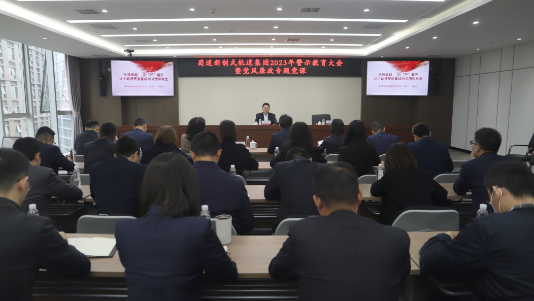 11月23日,蜀道新制式軌道集團黨委舉行2023年警示教育大會暨黨風廉政專題黨課,兩級領導班子成員、本部和駐蓉所屬企業黨員和入黨積極分子集中觀看黨風廉政警示教育片《鏡鑒——青年未廉》后,黨委書記、董事長韓瑀萱講授黨風廉政專題黨課。黨委委員、紀委書記蒙麗燕主持會議。