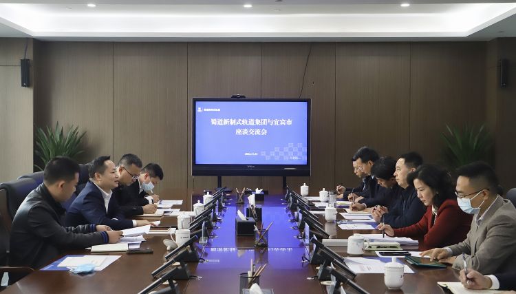 11月23日下午,蜀道新制式軌道集團(tuán)黨委書記、董事長(zhǎng)韓瑀萱與宜賓市委常委、統(tǒng)戰(zhàn)部長(zhǎng)陶學(xué)周一行在蜀道新制式軌道集團(tuán)舉行合作交流。宜賓市經(jīng)濟(jì)合作和新興產(chǎn)業(yè)局機(jī)關(guān)黨委書記陳正,蜀道新制式軌道集團(tuán)黨委副書記、副董事長(zhǎng)、總經(jīng)理張瑞英,黨委委員、副董事長(zhǎng)李洲等出席會(huì)議。