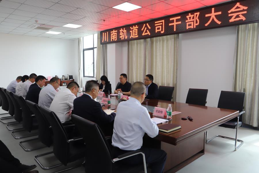 5月19日,川南軌道公司召開干部大會。蜀道新制式軌道集團黨委書記、董事長韓瑀萱,黨委副書記、職工董事、工會主席龍潛,黨委工作部(人力資源部、宣傳部)副部長滕婭出席會議。會議由龍潛同志主持。