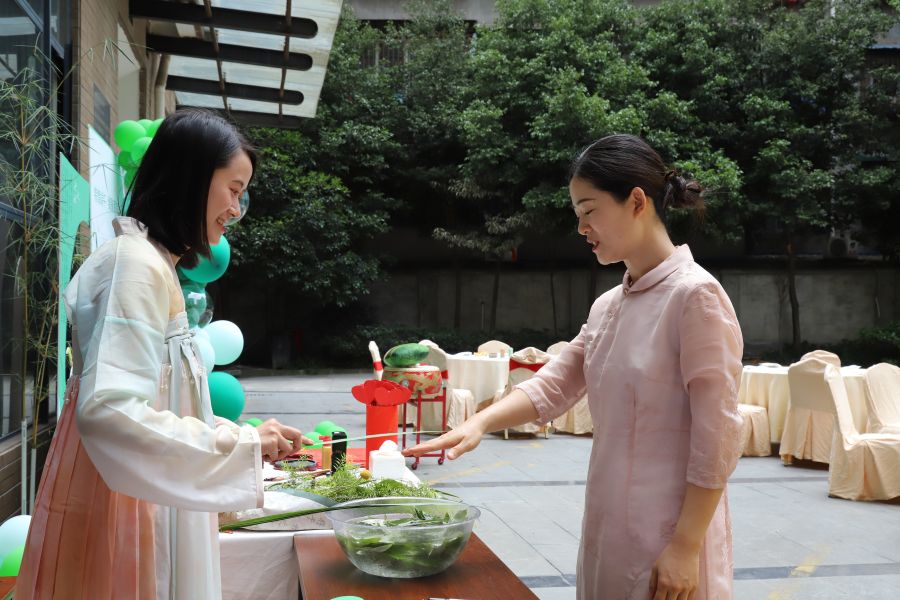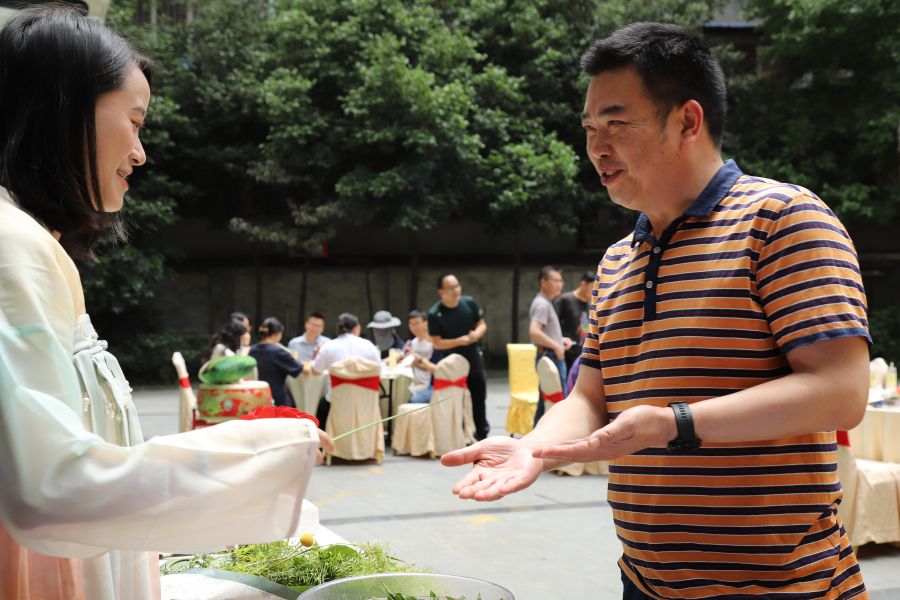 “嘉辰共喜沐蘭湯,毒沴何須采艾禳”。活動在充滿儀式感的“沐蘭湯”簽到環節中拉開序幕。沐蘭湯也稱浴蘭湯,是西漢末禮學家戴德著作《大戴禮記》記載的古俗,后來一般是煎菖蒲、艾葉等香草洗澡,有祛毒防病的寓意。