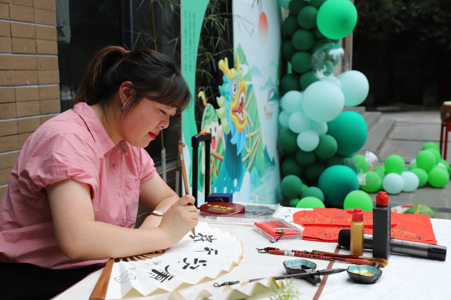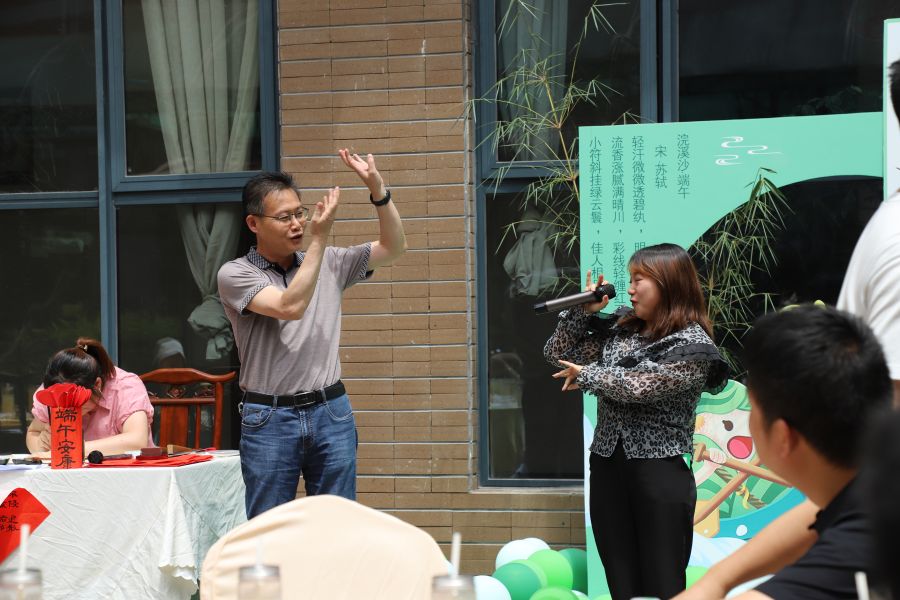 “五月五,過端午,劃龍舟,敲大鼓...”伴隨著朗朗上口的端午節主題歌謠,擊鼓傳粽、抓鴨子、套粽子、投壺等一些列趣味活動,一次次將現場氣氛推向高潮。