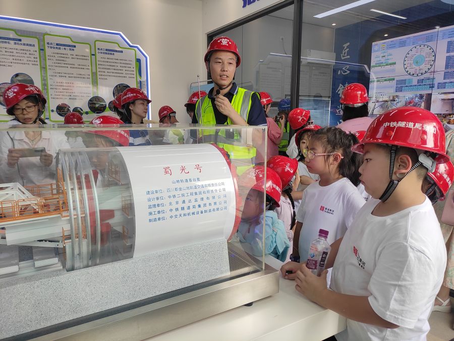 7月6日,蜀道集團(tuán)海外職工子女夏令營(yíng)一行赴都四項(xiàng)目永豐站參觀學(xué)習(xí)。在都四項(xiàng)目永豐站施工現(xiàn)場(chǎng),小朋友們參觀了都四項(xiàng)目盾構(gòu)展館、刀具巖石展區(qū)、大國(guó)工匠母永奇工作室,實(shí)地了解我國(guó)盾構(gòu)機(jī)從引進(jìn)到基本實(shí)現(xiàn)國(guó)產(chǎn)的艱辛歷史、學(xué)習(xí)盾構(gòu)機(jī)掘進(jìn)原理,通過(guò)隧道施工中挖掘出的石頭及被破壞的刀具,感受都四項(xiàng)目盾構(gòu)施工的難度以及參建各方攻堅(jiān)克難的決心與毅力,并以大國(guó)工匠為榜樣,爭(zhēng)做小小紅旗手,走在時(shí)代前列。