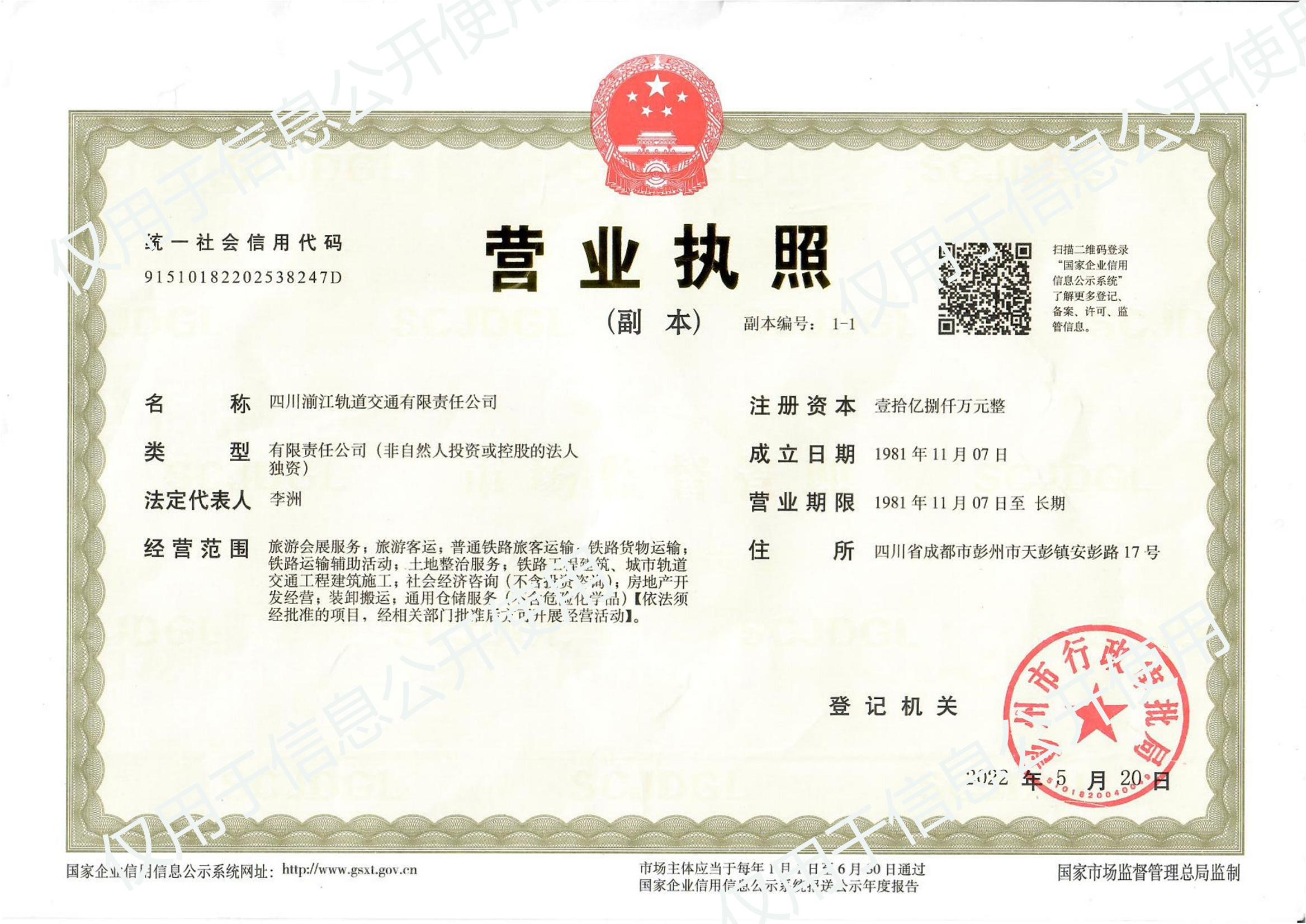 2020年10月20日,四川省地方鐵路局彭州分局改制方案經四川省鐵路產業投資集團有限責任公司批準,成立四川湔江軌道交通有限責任公司,注冊資本金壹拾億捌仟萬元整。2021年1月18日完成四川湔江軌道交通有限責任公司股權變更,變更后四川省鐵路產業投資集團有限責任公司占股92.8%,四川省鐵路集團有限責任公司占股7.2%。公司主要負責彭白鐵路改建工程項目建設運營及其他業務管理。