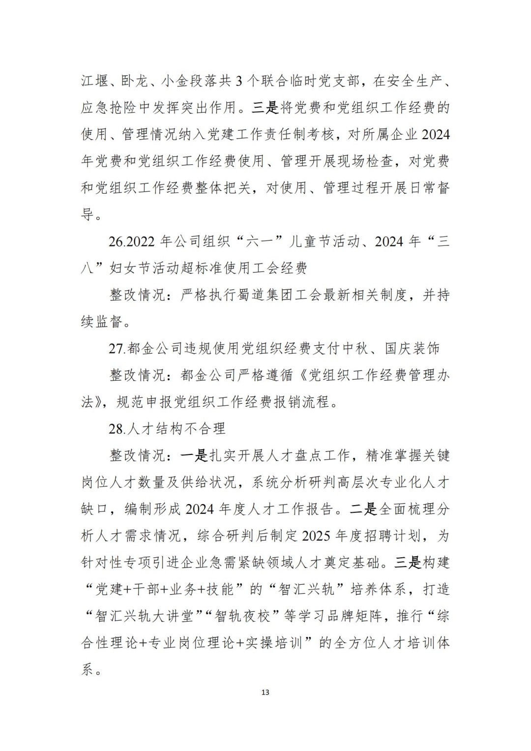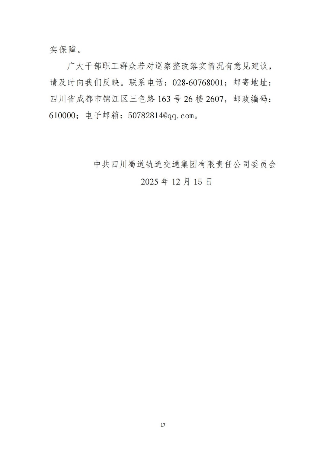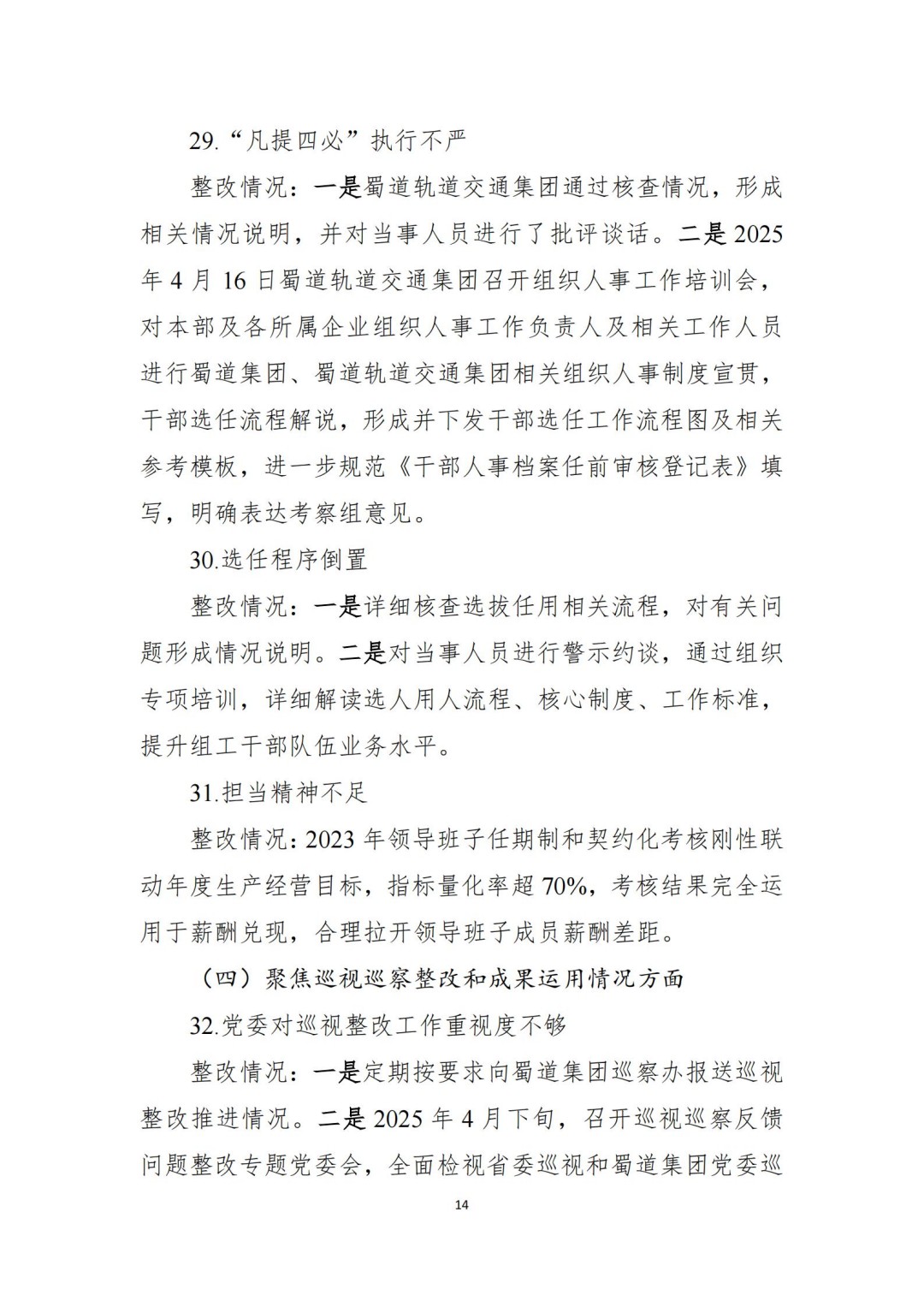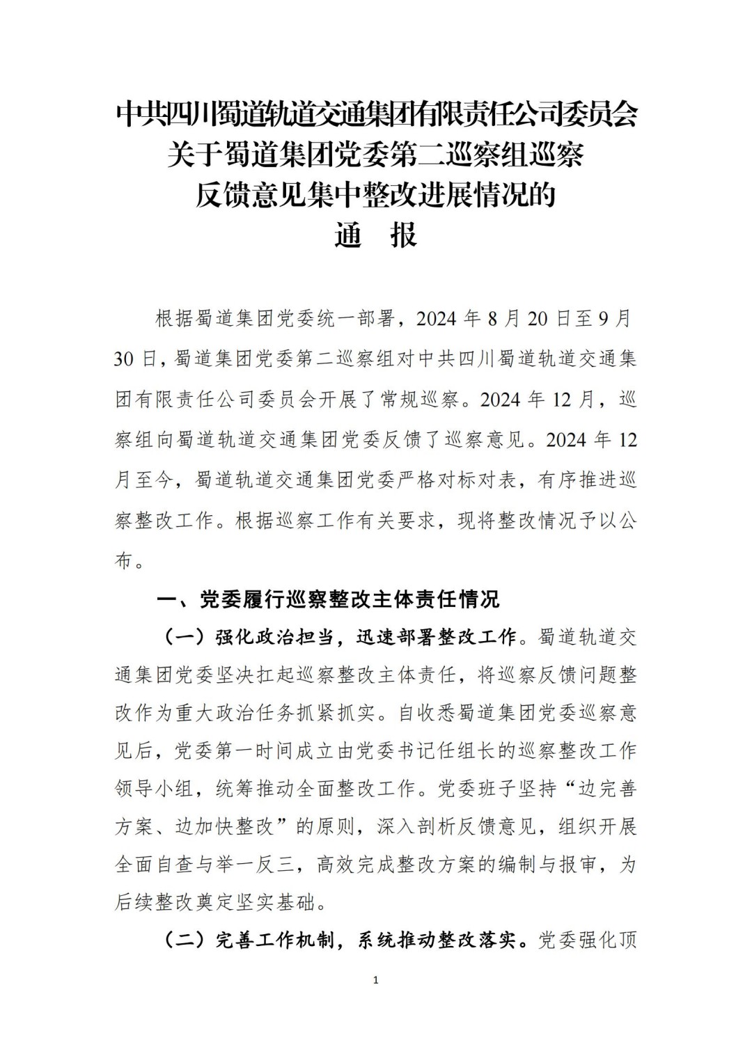 中共四川蜀道軌道交通集團有限責任公司委員會關于蜀道集團黨委第二巡察組巡察反饋意見集中整改進展情況的通報